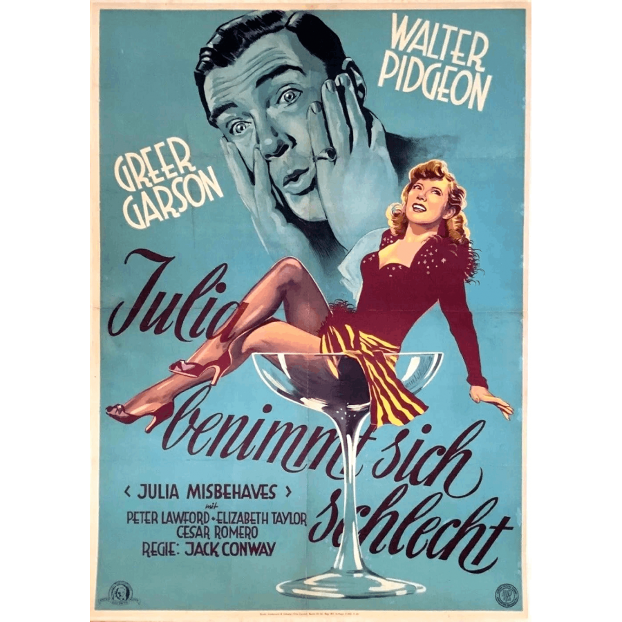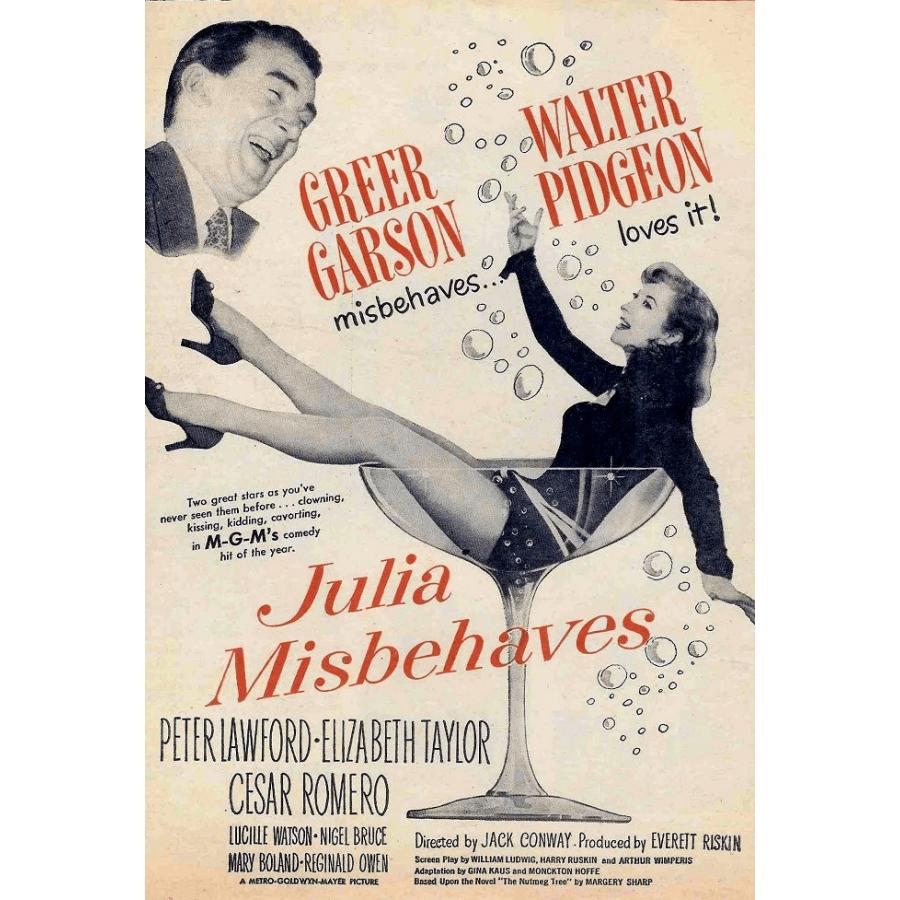 Etiquetas: Julia Misbehaves, Travessuras de Julia, Jack Conway, 1948, comédia screwball, protagonista feminina, comédia romântica, comédia pastelão, comédia de costumes, bastidores, camarim, dançarina, dança, pianista, pintura mural, artista, romance, amor proibido, triângulo amoroso, amor entre classes sociais, casamento intercultural, fuga amorosa, casamento, convite de casamento, ensaio de casamento, reencontro mãe e filha, conflito com sogra, separação conjugal, reconciliação, amantes reunidos, relações familiares, pais afastados, amigo rico, discriminação social, britânicos na França, Paris, sul da França, mansão, conversível, bar, cassino, carnaval, piquenique, passeio de barco, acidente de barco, cena na lama, risadas, champanhe, cena do café da manhã, acrobata, acrobata profissional, trupe de circo, foca treinada, urso de estimação, simulação de suicídio, engano, ardil, Broadway, vaudeville, problemas financeiros, ciúmes, amor não correspondido, romance proibido, casamento arranjado, noivo, desaprovação da mãe, complicações amorosas, conflito amoroso, antiguidades, referência ao personagem, cabeça dissecada, embrulhado como presente