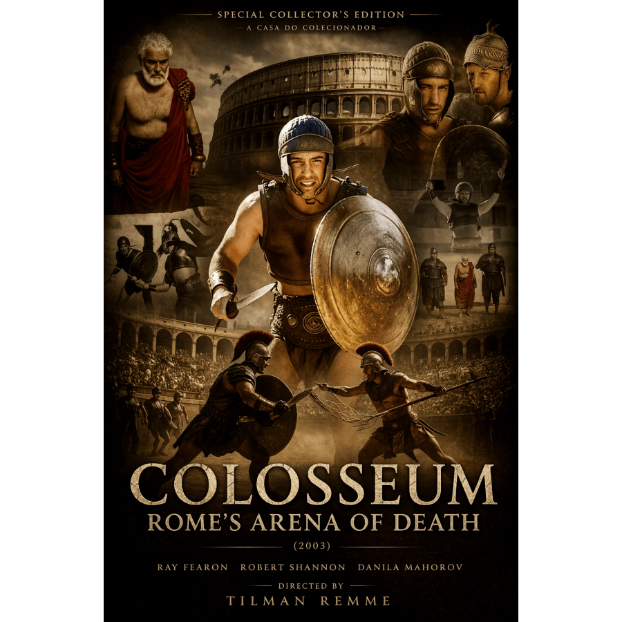 Etiquetas: Colosseum: Rome's Arena of Death, Coliseu: A Arena da Morte, Tilman Remme, 2003, império romano, roma antiga, história romana, gladiador, vida dos gladiadores, treinamento de gladiadores, combate na arena, arena do coliseu, história do coliseu romano, imperador tito, imperador vespasiano, imperadores romanos, verus gladiador, priscus gladiador, escravos romanos, escravidão na roma antiga, pedreira romana, trabalho forçado, escola de gladiadores, lutas na arena romana, luta até a morte, luta de espada, combate com espada, armas romanas, armadura capacete escudo, guerreiro romano, combate brutal, execução na arena, polegar para baixo, ataque de leão, ataque de tigre, luta com feras, entretenimento romano, violência antiga, reconstituição histórica, semi documentário, sociedade romana, aristocracia romana, mulheres romanas, amizade irmandade lealdade, juramento honra, companheiros guerreiros, banhos romanos, massagem romana, narrador documental, referência a suetônio, ano 79 d.c., ano 80 d.c., roma itália história, gênero espada e sandália